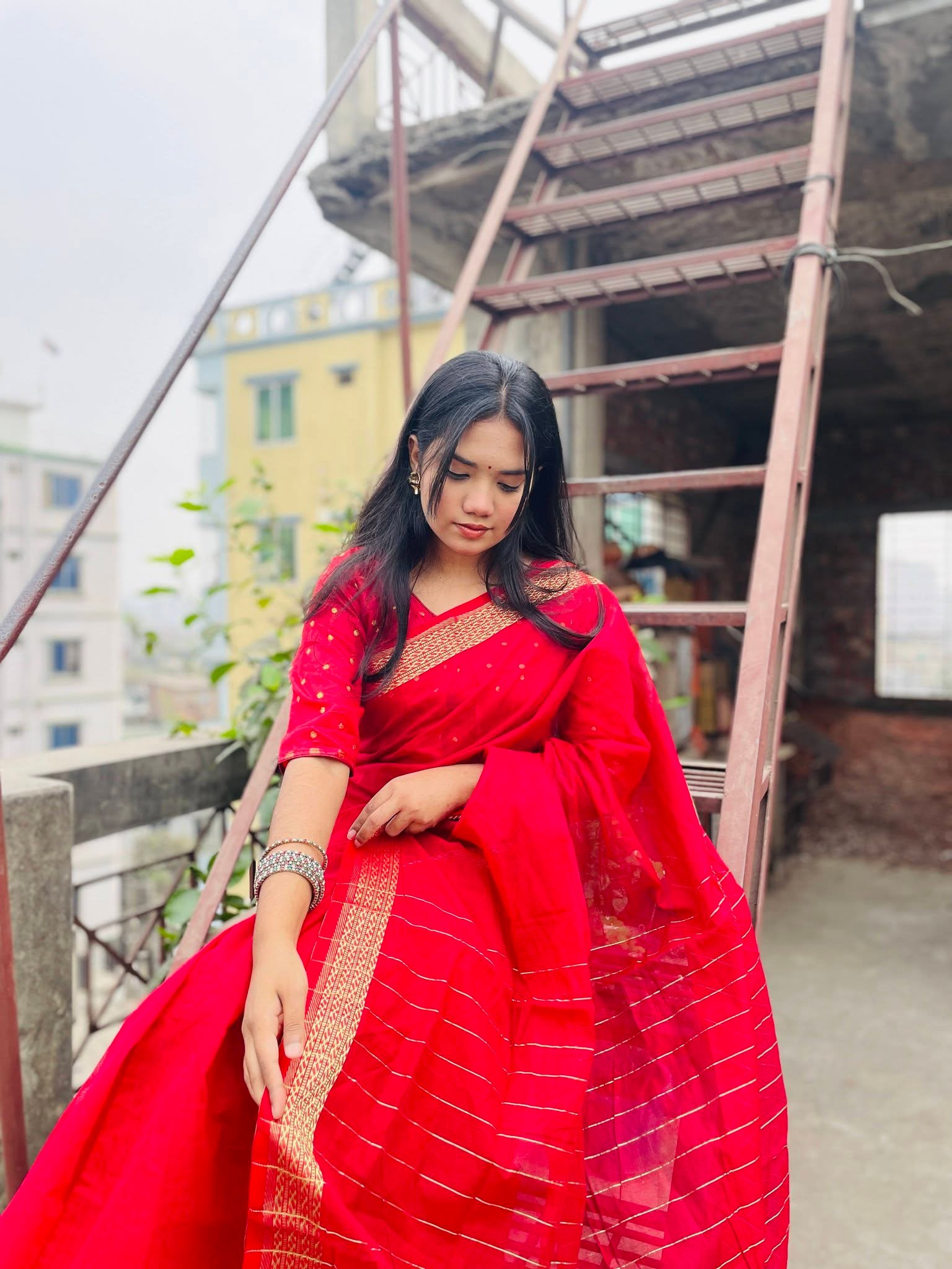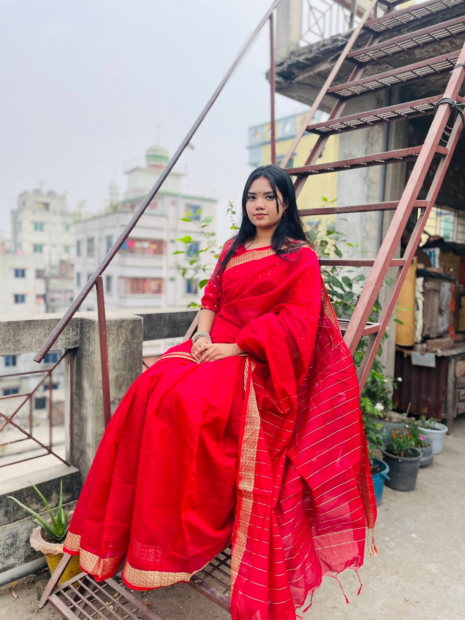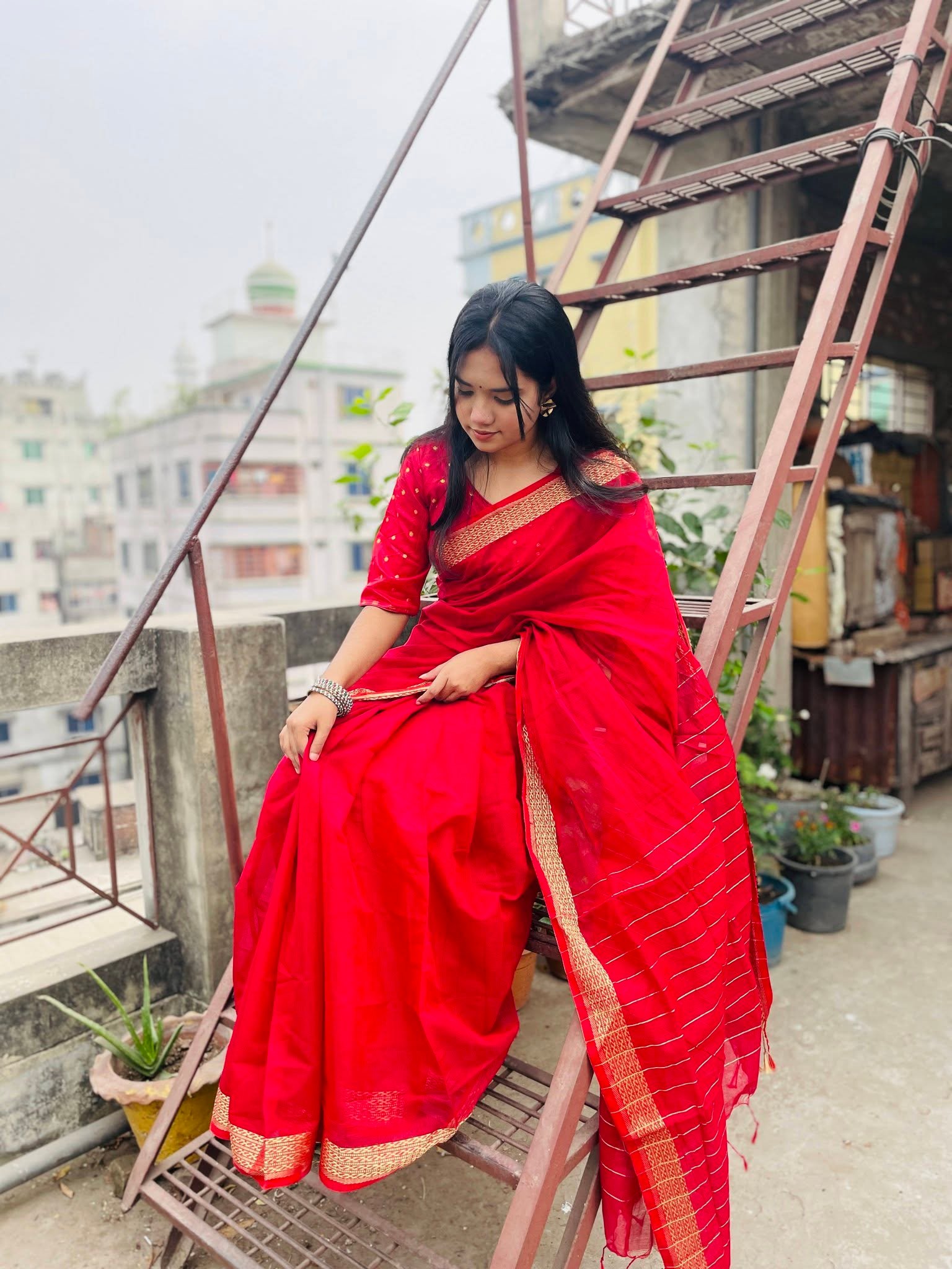 মেরুন নূরী শাড়ী